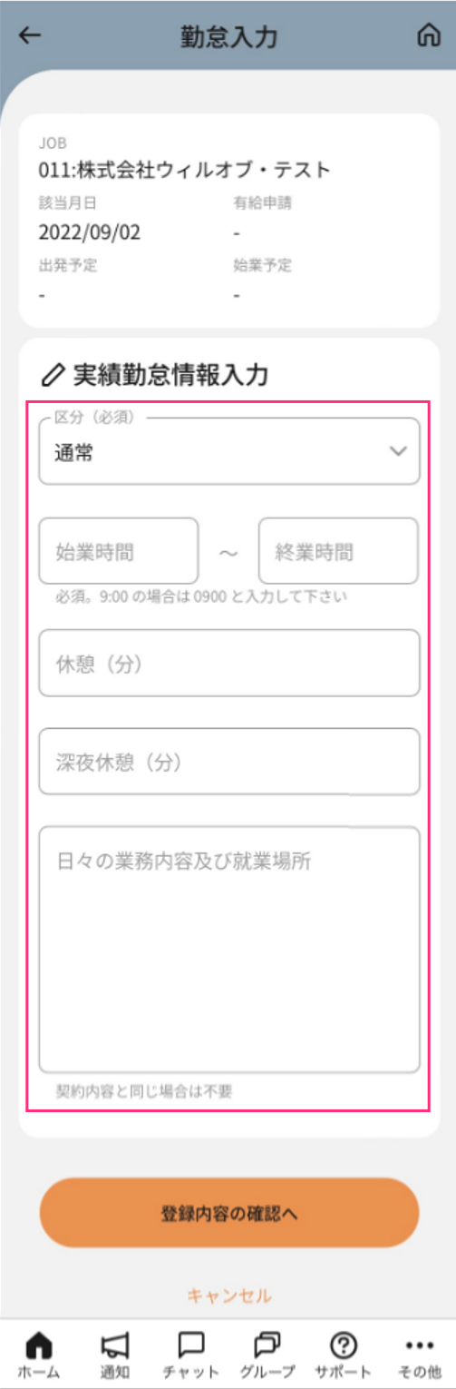 4. 始業時間、就業時間、休憩時間(分)を入力して下さい